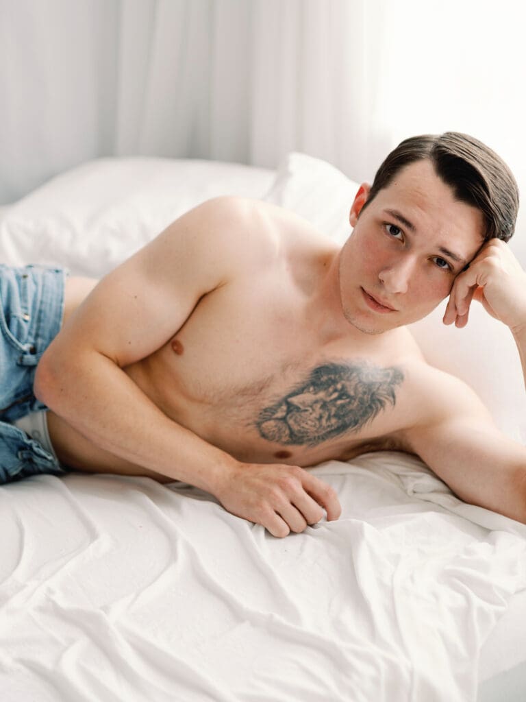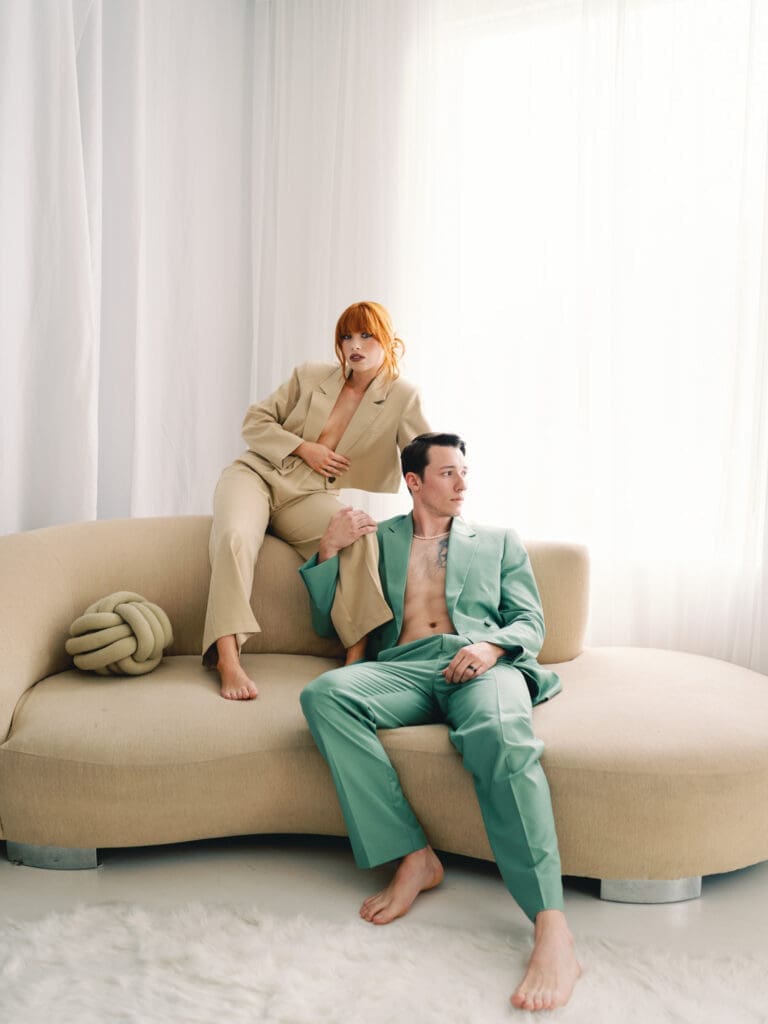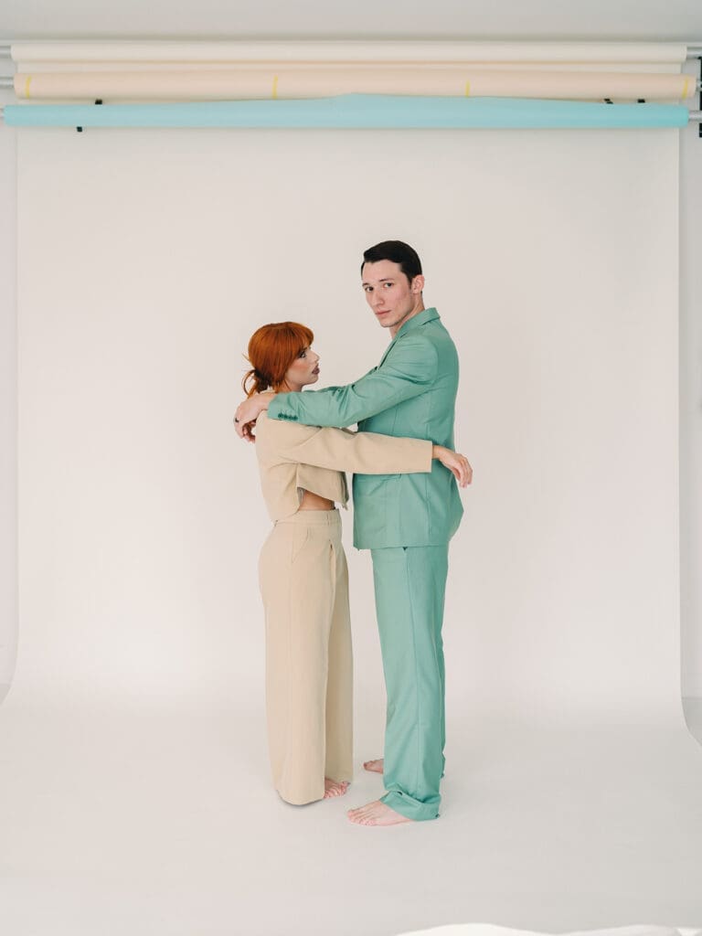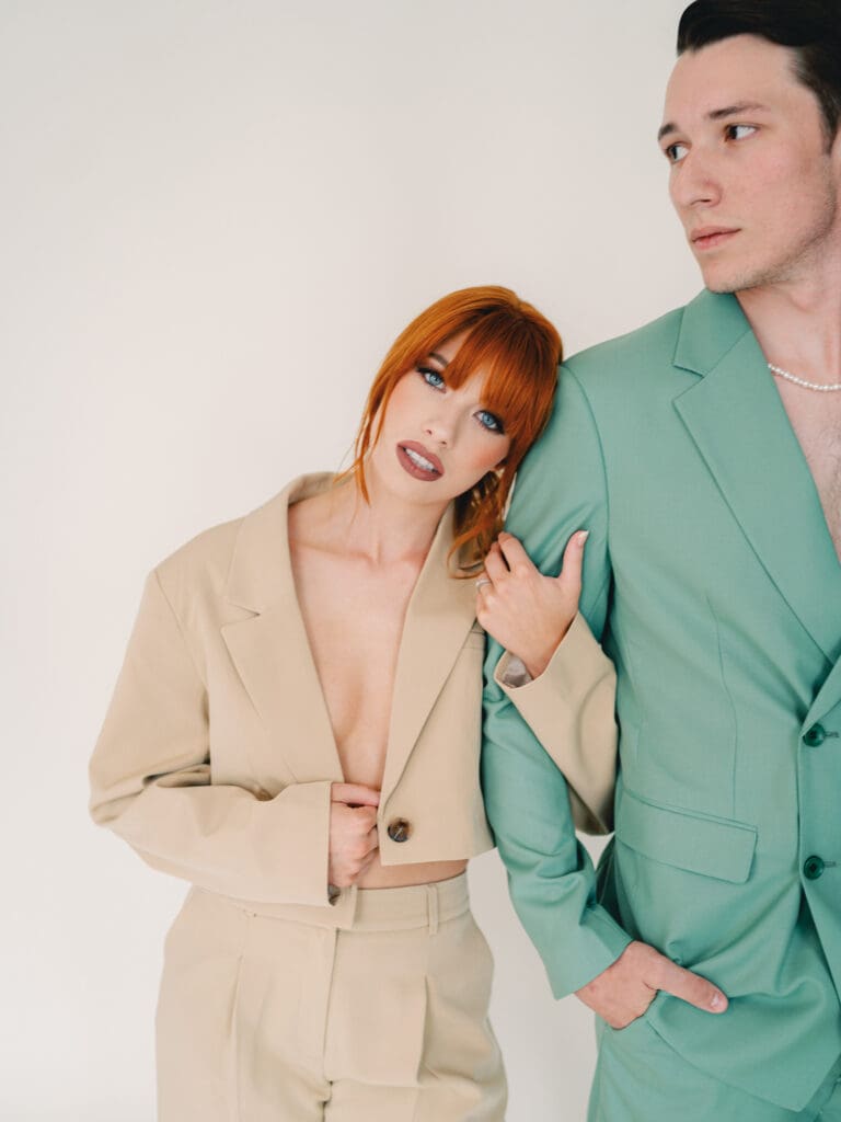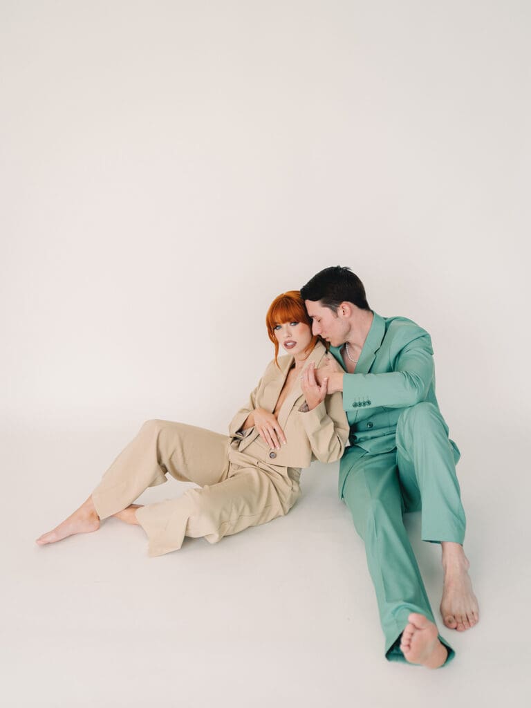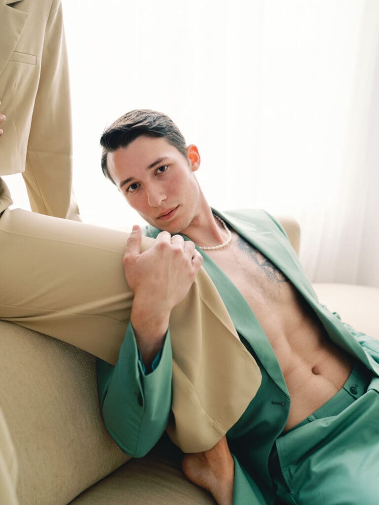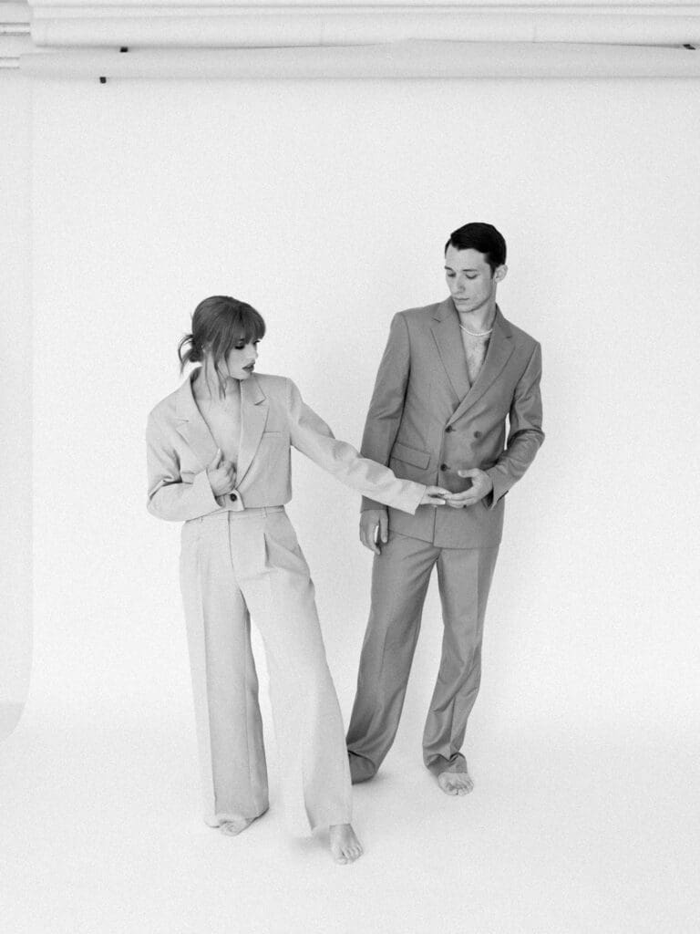 Styled with a nod to 1990s Calvin Klein campaigns, Suits & Skins touches on vintage minimalism through a clean, modern studio aesthetic. The focus was simplicity, pair-back styling, and natural movement. Kins and Ryan moved effortlessly between tailored silhouettes and bare skin which allowed the images to feel intimate without feeling staged. Without directing moments, we allowed for them to unfold, allowing photographs that feel spontaneous and confident. Shot at A Dose of Libra Studio on a summer afternoon in Nashville, the session was a breath of fresh air. Linen tailoring, soft light, and subtle storytelling guided the vibes. This editorial proved that intimacy really only requires intention.